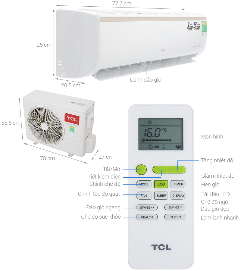 Bên cạnh đó, máy lạnh TCL sử dụng loại gas R32, là loại gas thân thiện với môi trường, không gây nguy hại tới sức khỏe người dùng cũng như không gian sống. Đồng thời còn giúp tăng thêm hiệu suất làm lạnh, tiết kiệm điện tối ưu.